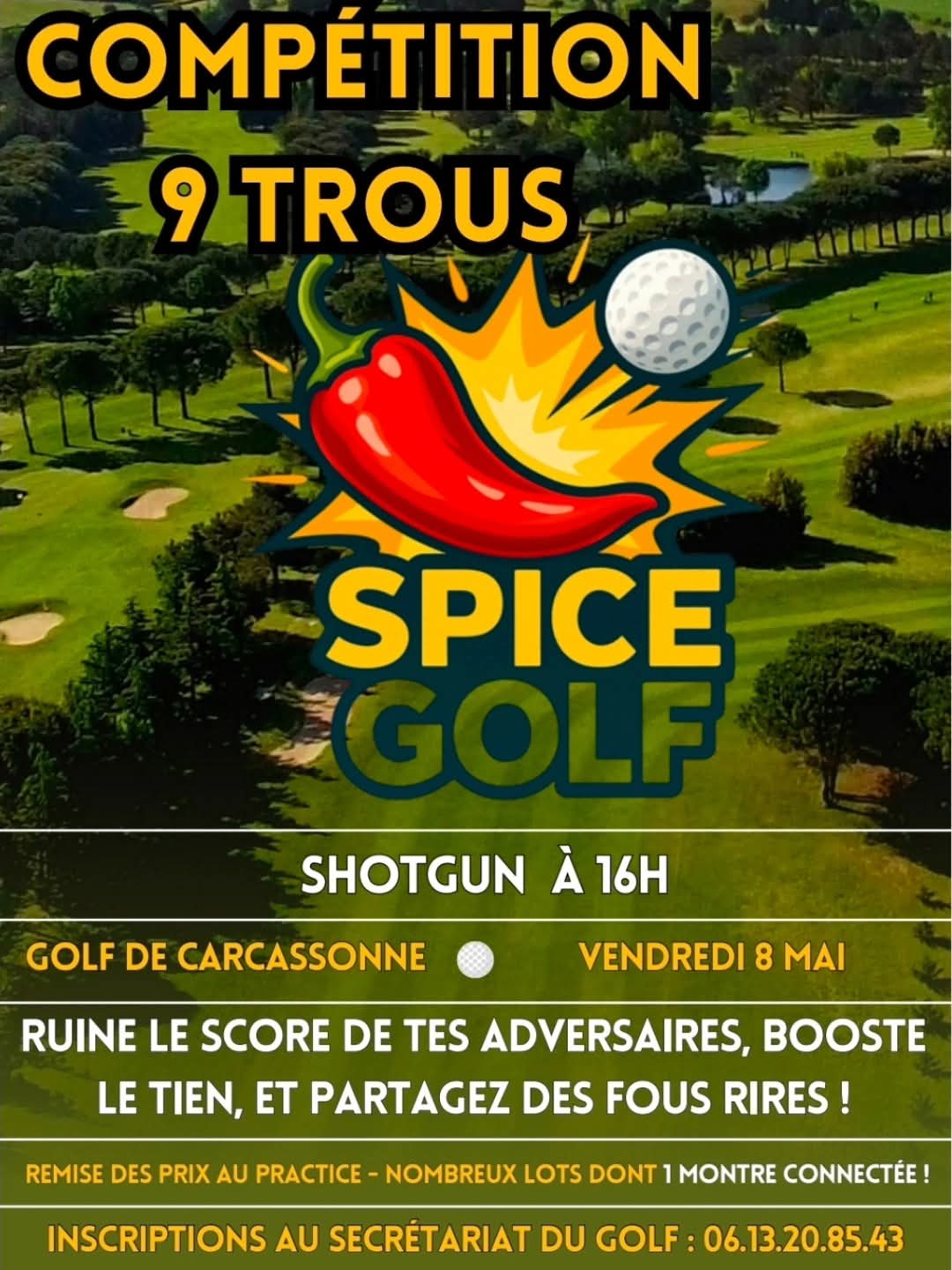 Rendez-vous vendredi 8 mai à 16h pour une compétition pas comme les autres : un shotgun 9 trous en scramble version Spice Golf !